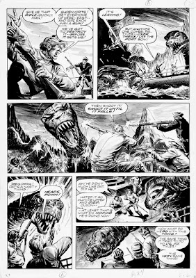 Here, the extreme reptilian aspect of P. olsoni (I have chosen to decapitalise the specific name to bring it further in line with The International Commission on Zoological Nomenclature) is depicted, as Olson goes Barbarian on the creature to little avail. Like a zombie, only removal of the head stops its massive onslaught - and given other reptiles reaction to decapitation (WARNING EXTREMELY GRAPHIC AND HORRIFIC CONTENT) even that might not have been enough to stop it biting for hours!
