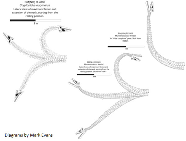 It’s well known these days that plesiosaurs were almost certainly not capable of the erect-necked or swan-necked poses shown in older artwork: the anatomy is against it, it doesn’t work when we consider their buoyancy and pose in the water, and it’s not consistent with what we understand of their ecology and behaviour anyway. While they should therefore be reconstructed with more horizontal neck poses, it doesn’t follow, however, that they were wholly incapable of maintaining a vertical neck posture for a brief period...